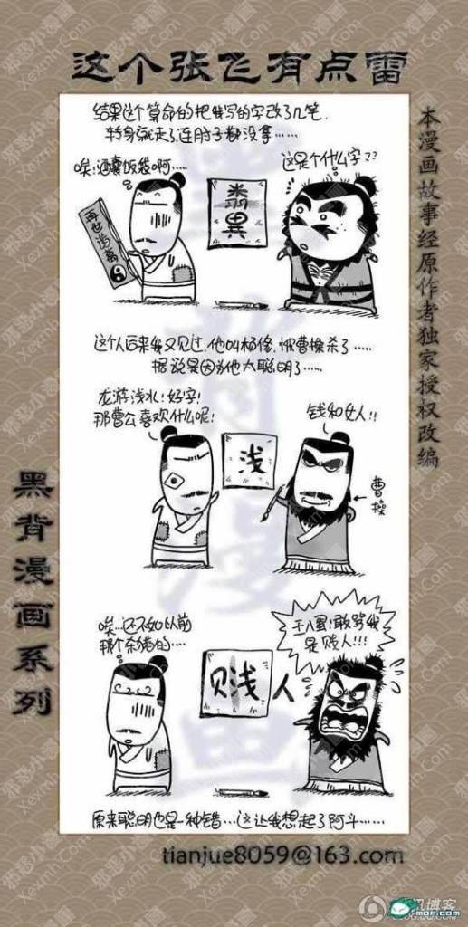 猛张飞看似粗犷,但心思也是非常细密的!刘关张好基友,腹黑的孔明,娘炮的子龙,龌龊的魏延,原来三国也是可以如此可爱的。